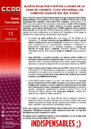 COMUNICADO 11 SECTOR.- Alerta roja por fuertes lluvias en la zona de Levante. CCOO recuerda los cambios legales del RDL 8/2024