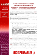 COMUNICADO 07 CCFF.- ADJUDICACI脫N DE LA VACANTE DE ESPECIALISTA EN EL CENTRO DE CHAMART脥N - LIMPIEZA DE TRENES DE LA EMPRESA ACCIONA FACILITY SERVICES