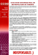 COMUNICADO 12 SECTOR.- CCOO exige seguridad real en Metropolitano de Tenerife.