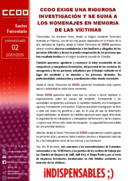 COMUNICADO 02 SECTOR.- CCOO exige una rigurosa investigación y se suma a los homenajes en memoria de las víctimas.