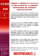 COMUNICADO 01 IRYO.- FIRMADA Y CERRADA EL ACTA DE LA 脷LTIMA REUNI脫N DE LA COMISI脫N NEGOCIADORA DEL CONVENIO COLECTIVO DE IRYO
