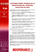 COMUNICADO 05 IRYO.- ACUERDOS SOBRE JORNADA EN LA NEGOCIACI脫N DEL CONVENIO COLECTIVO DE IRYO