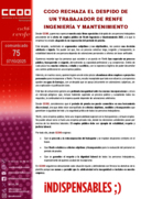 COMUNICADO 75.- CCOO RECHAZA EL DESPIDO DE UN TRABAJADOR DE RENFE INGENIER脥A Y MANTENIMIENTO